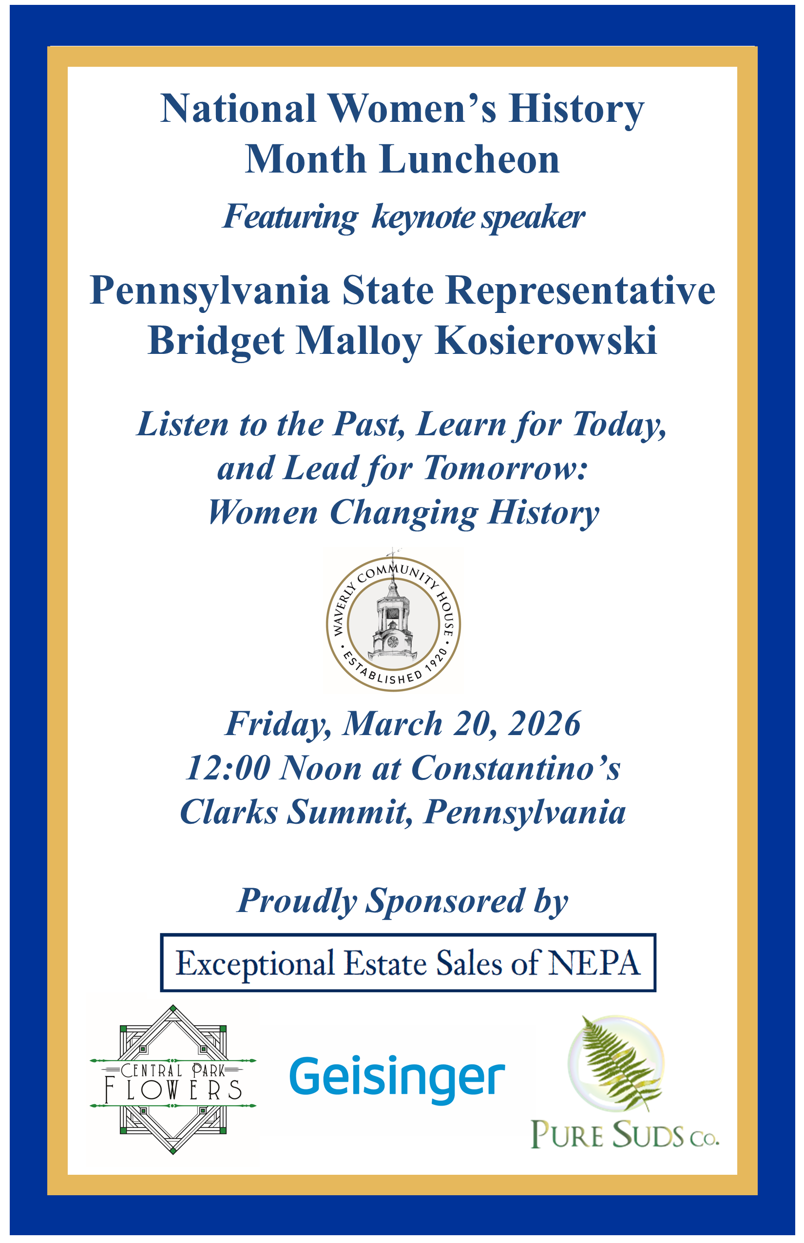 Friday, March 20th, 12 Noon at Constantino's in Clarks Summit. Featuring Keynote Speaker Representative Bridget Malloy Kosierowski. For more information or to purchase tickets, please CLICK HERE. Proudly Sponsored by: […]