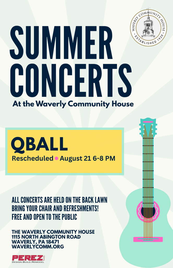 The Waverly Community House is thrilled to announce our upcoming Summer and Fall Concert Series. We are excited to host a lineup of talented musicians who will perform on our beautiful back lawn and provide unforgettable experiences for all who attend.